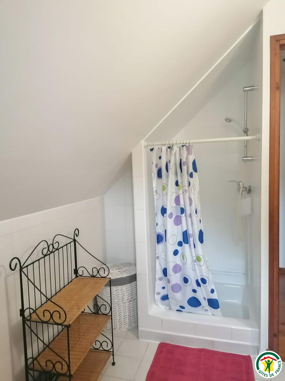 Rez-de-chaussée : séjour avec coin-cuisine et coin-détente (poêle à bois), WC. A l’étage : 2 chambres (1 lit double en 140cm) (1 lit double en 140cm et 1 lit simple en 90cm), salle d’eau. Chauffage électrique. Connexion internet par wifi propre au gite. Parking privatif. Jardin clos privatif. Local vélos. Animaux admis avec caution.